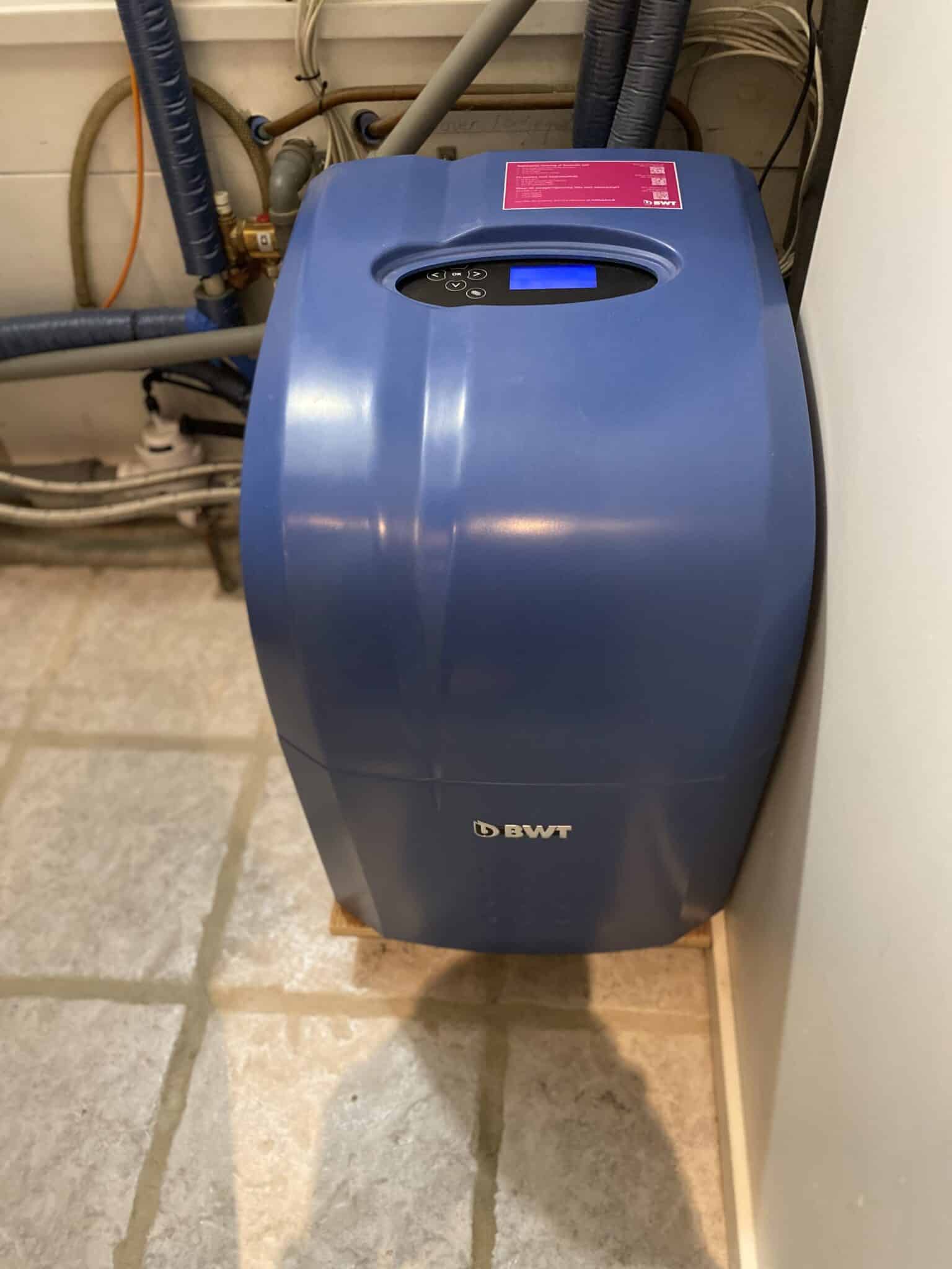 BWT’s blødgøringsanlæg installeres lige efter vandmåleren og leverer kalkfrit vand til hele hjemmet